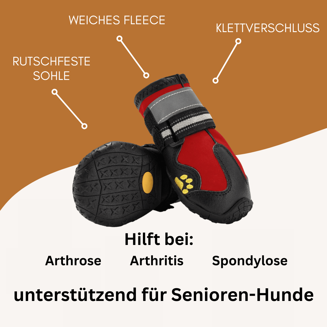Sie entlasten die Gelenke, geben mehr Stabilität und erleichtern älteren Hunden den Alltag. Ideal für Seniorenhunde, die wieder sicherer und schmerzfreier laufen sollen.